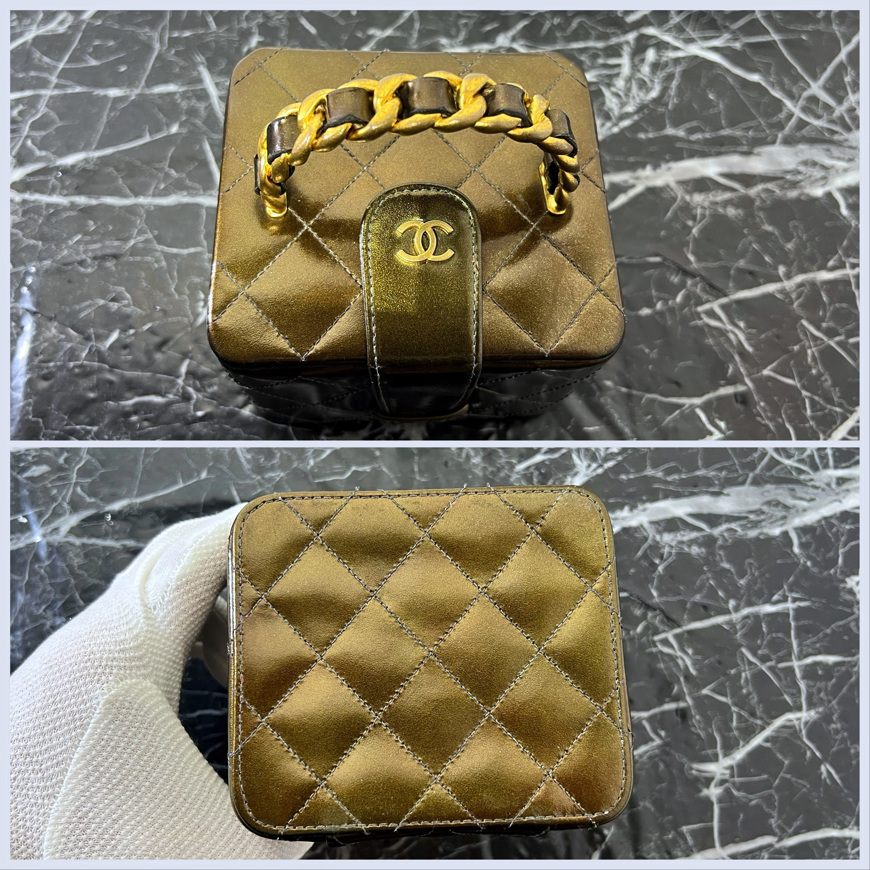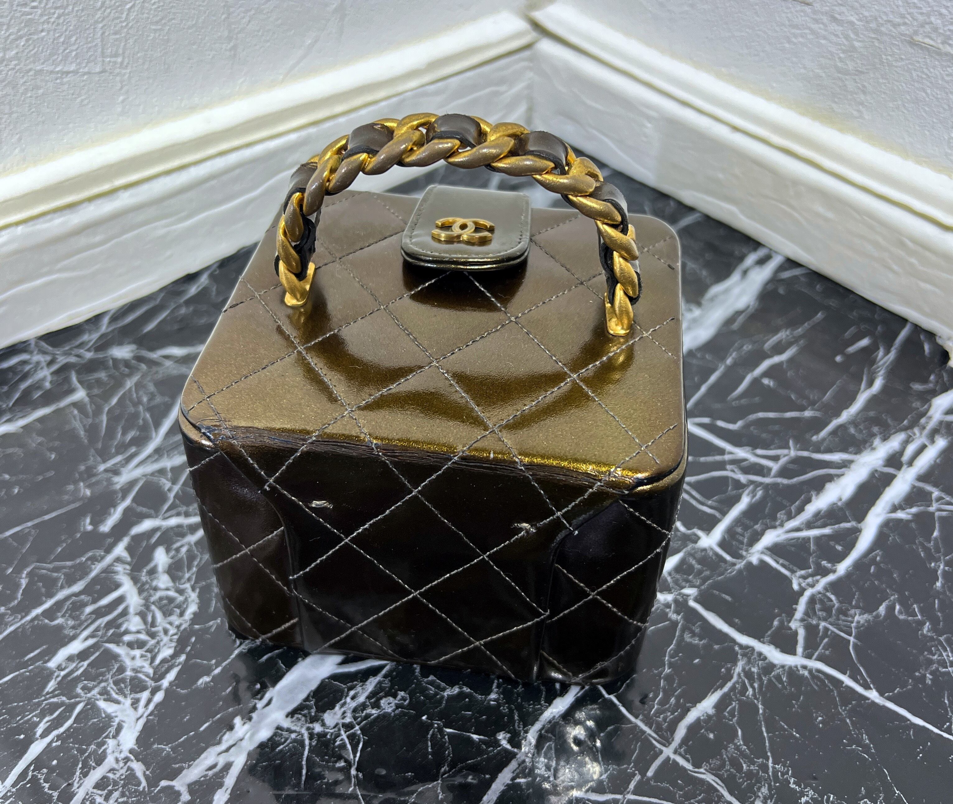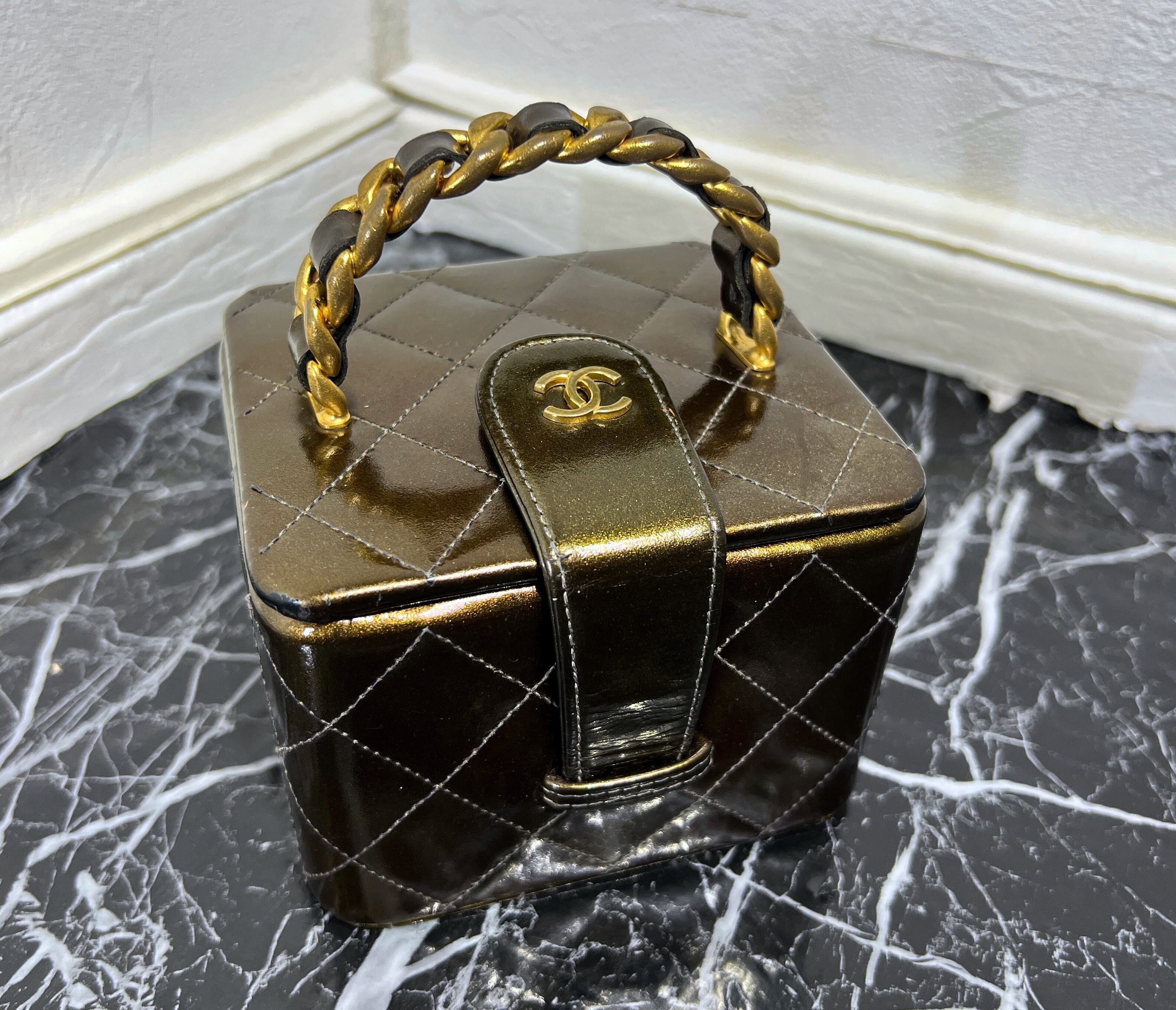 希少 美品 ヴィンテージ シャネル エナメル ハードケース型 ミニバニティケース/化粧ケース マトラッセ