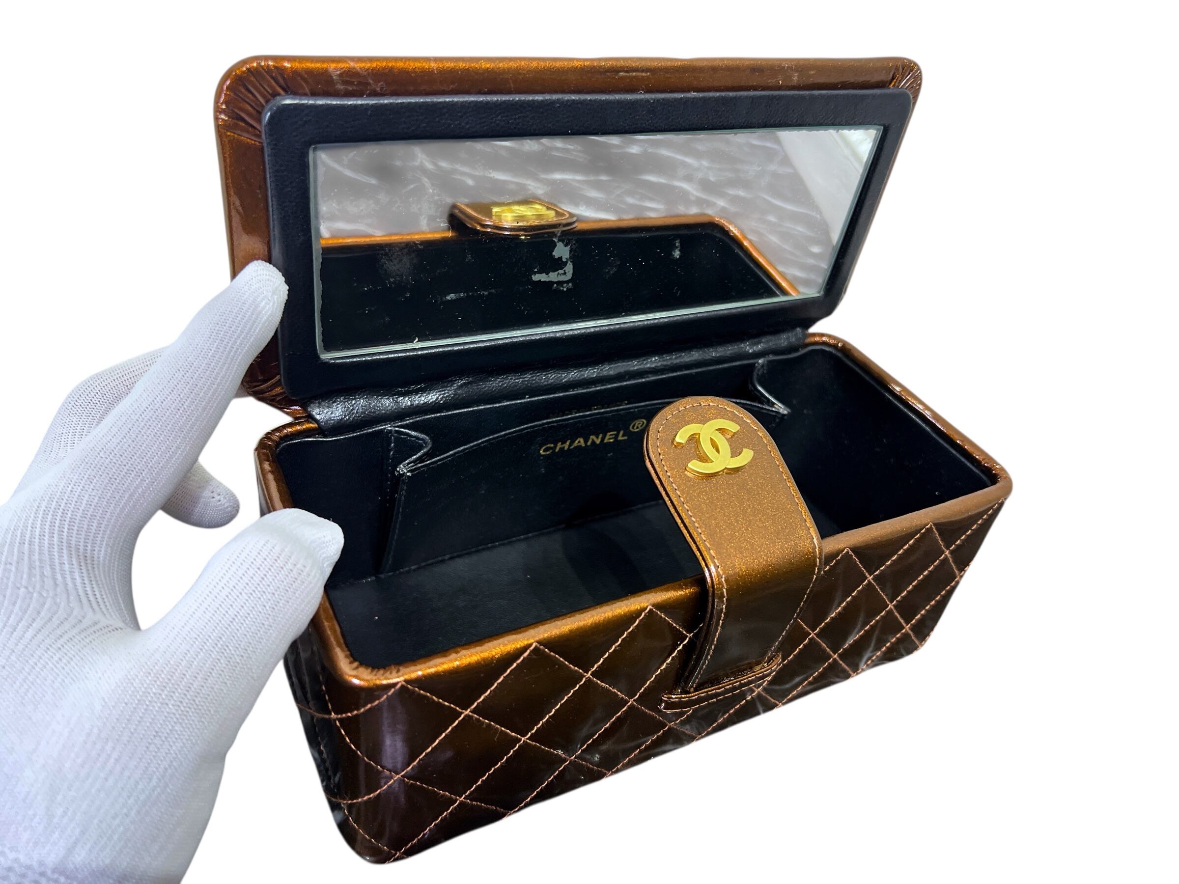 超美品 ヴィンテージ シャネル ミラー付 エナメル 化粧ケース バニティケース メイクボックス
