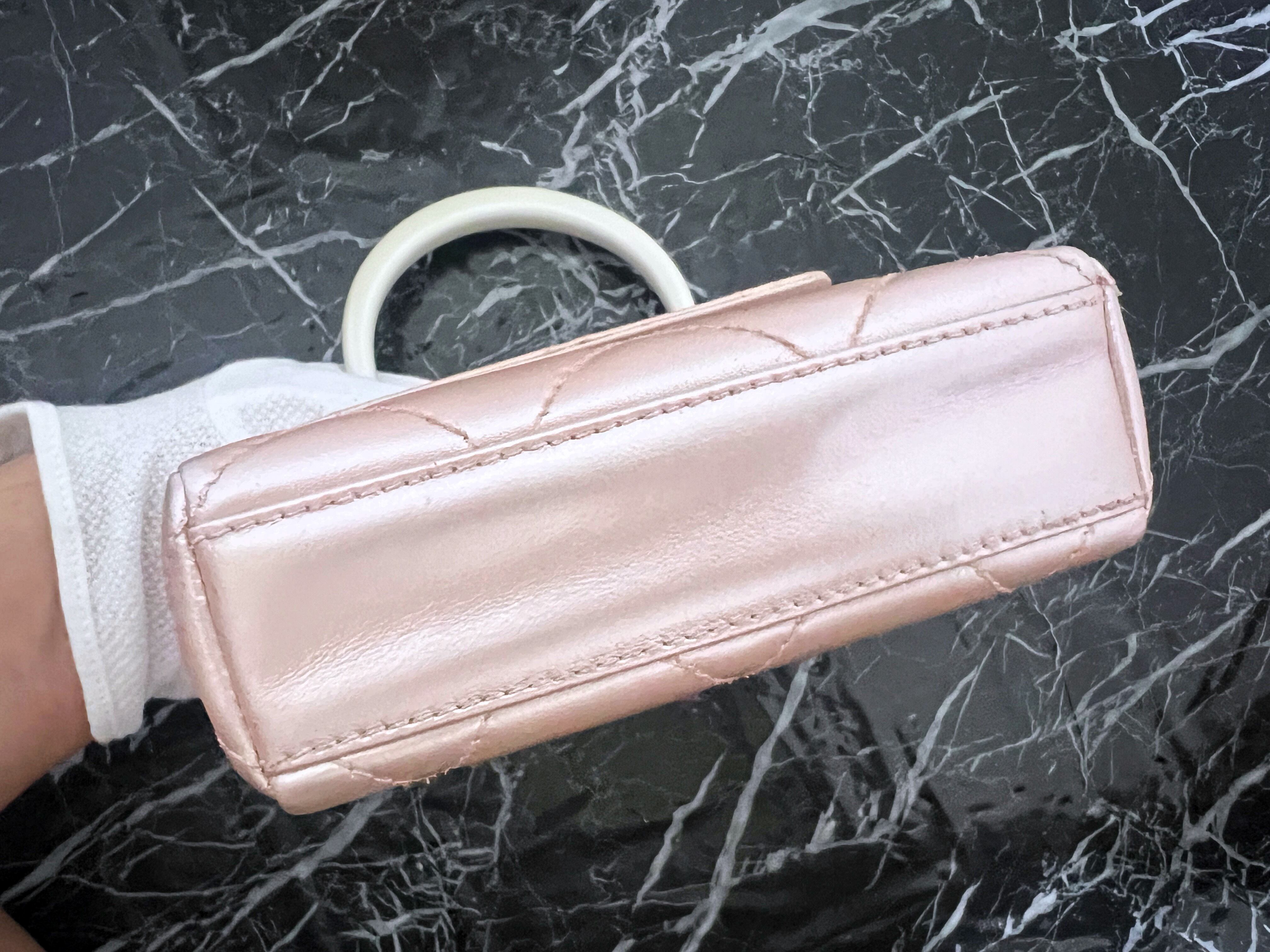 美品 シャネル ミニマトラッセ プラスチックハンドル ハンドバッグ ラムスキン ピンクパール