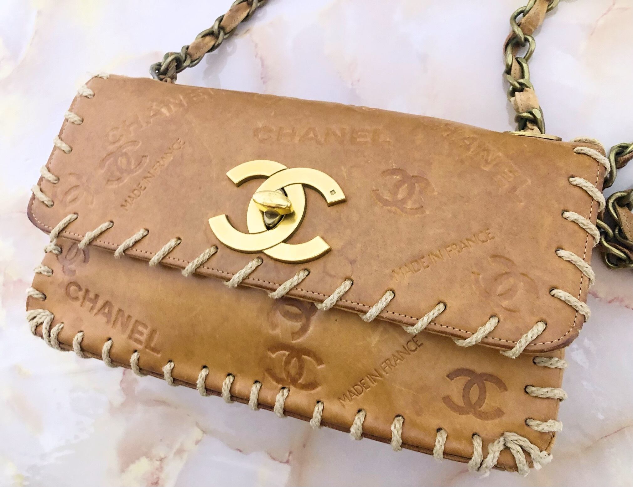 当時物!激レアクルーズライン ヴィンテージ シャネル ヌメ革 デカココ ターンロック チェーンバッグ