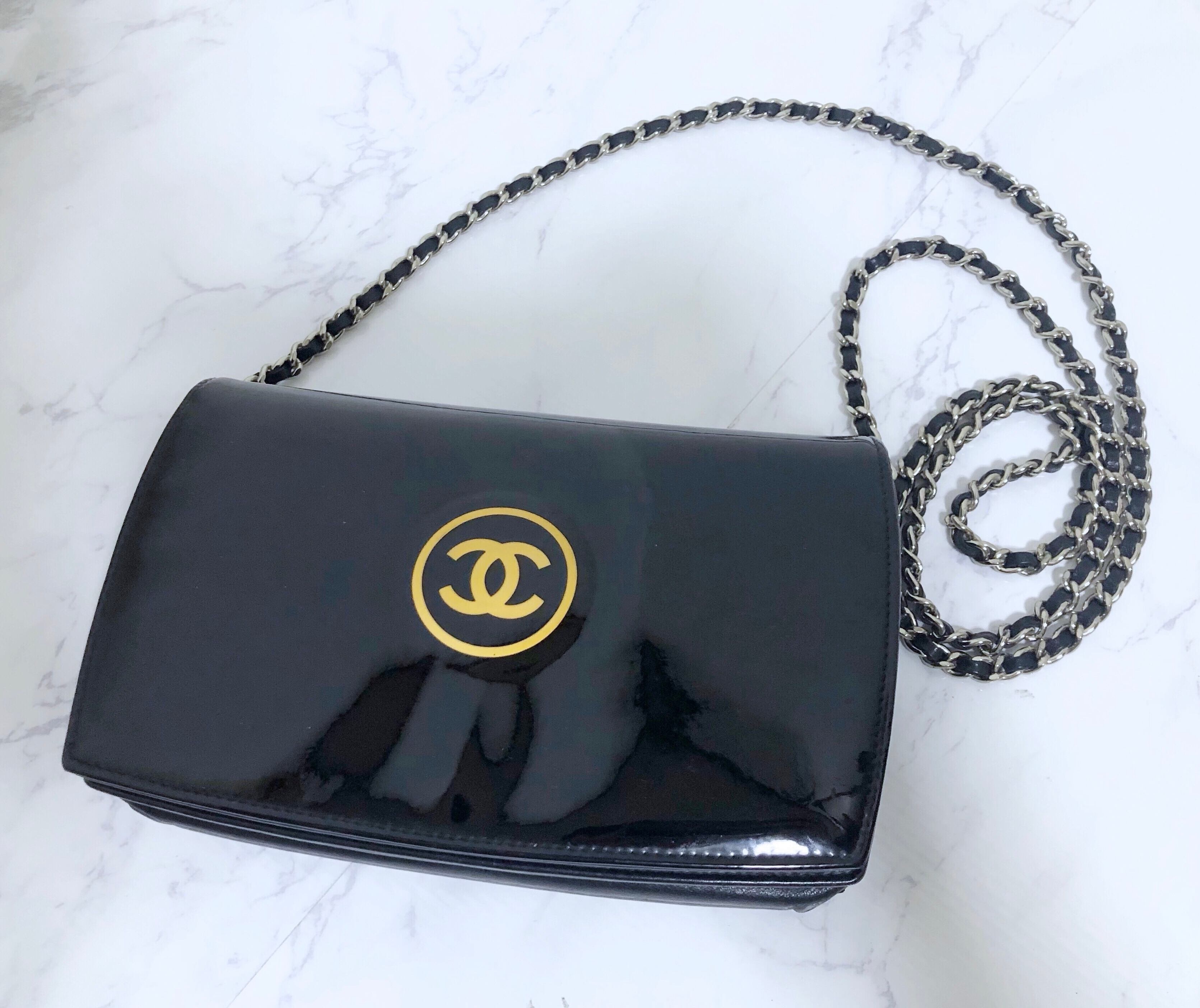 2007年のクルーズラインとして発売されたメイクアップラインのパレット型のフルフラップ型チェーンウォレットです。当時のブティックでも玉数が少なく速完したモデルです。