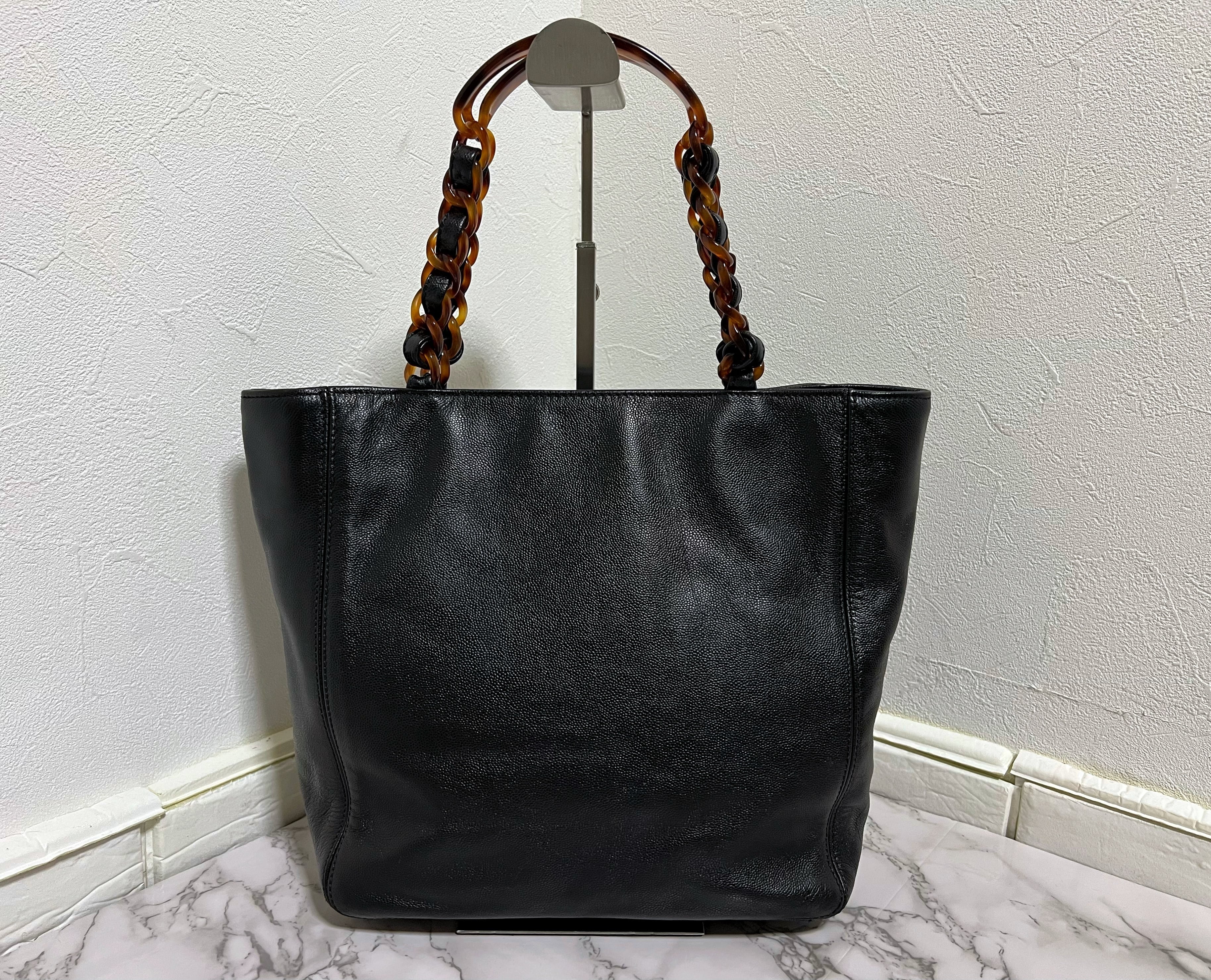 激レア!ヴィンテージ シャネル べっ甲 プラチェーン キャビアスキン トートバッグ