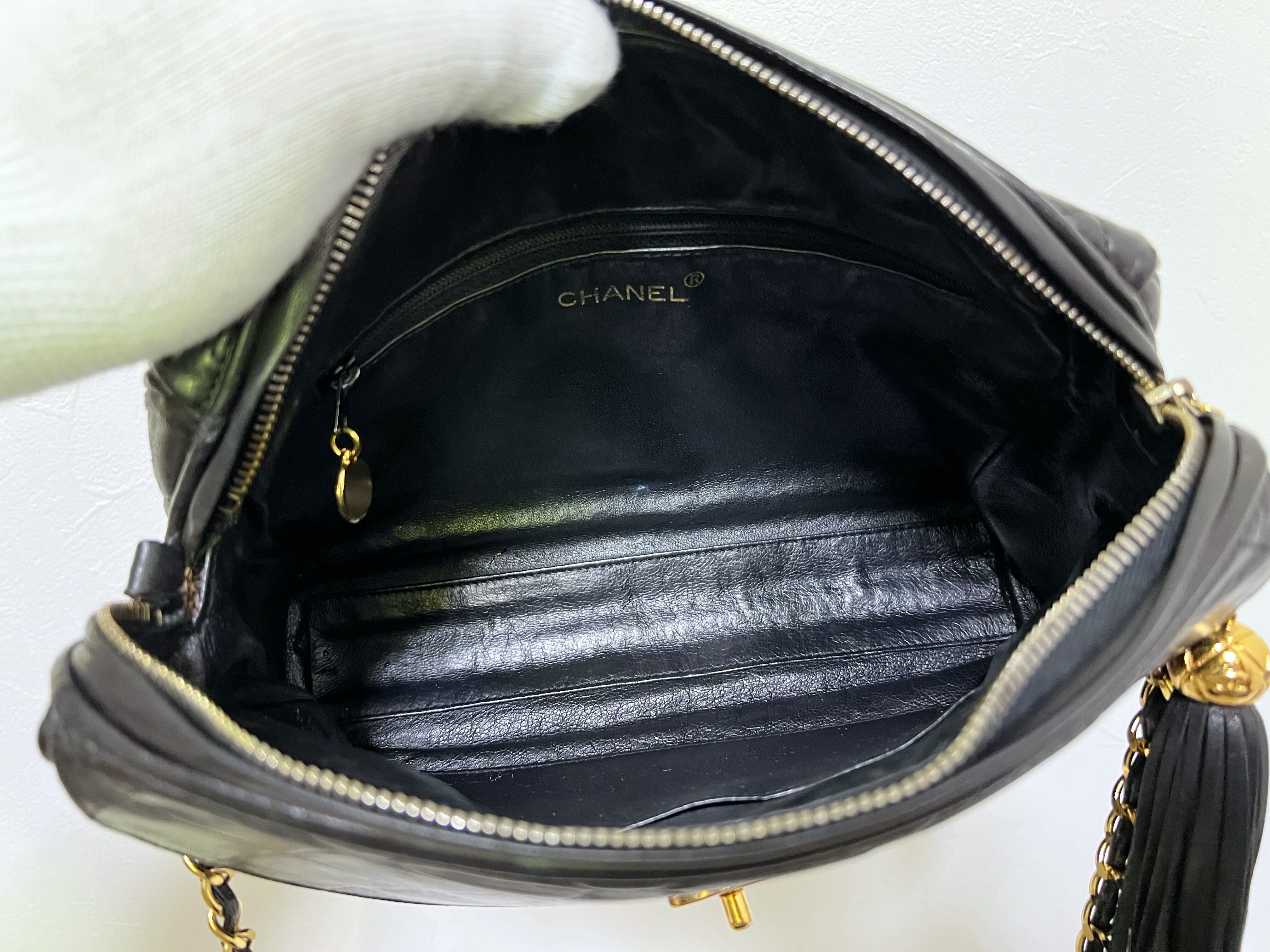 希少!ヴィンテージ シャネル マトラッセ ターンロック フリンジ チェーン メッセンジャーバッグ