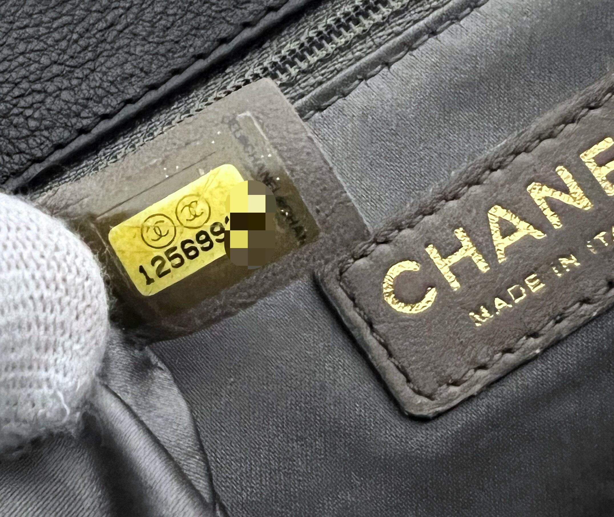 最上級のカーフレザーを使用し、中央には異なる色の小さなメタルプレートをCCマークに組み合わせています。