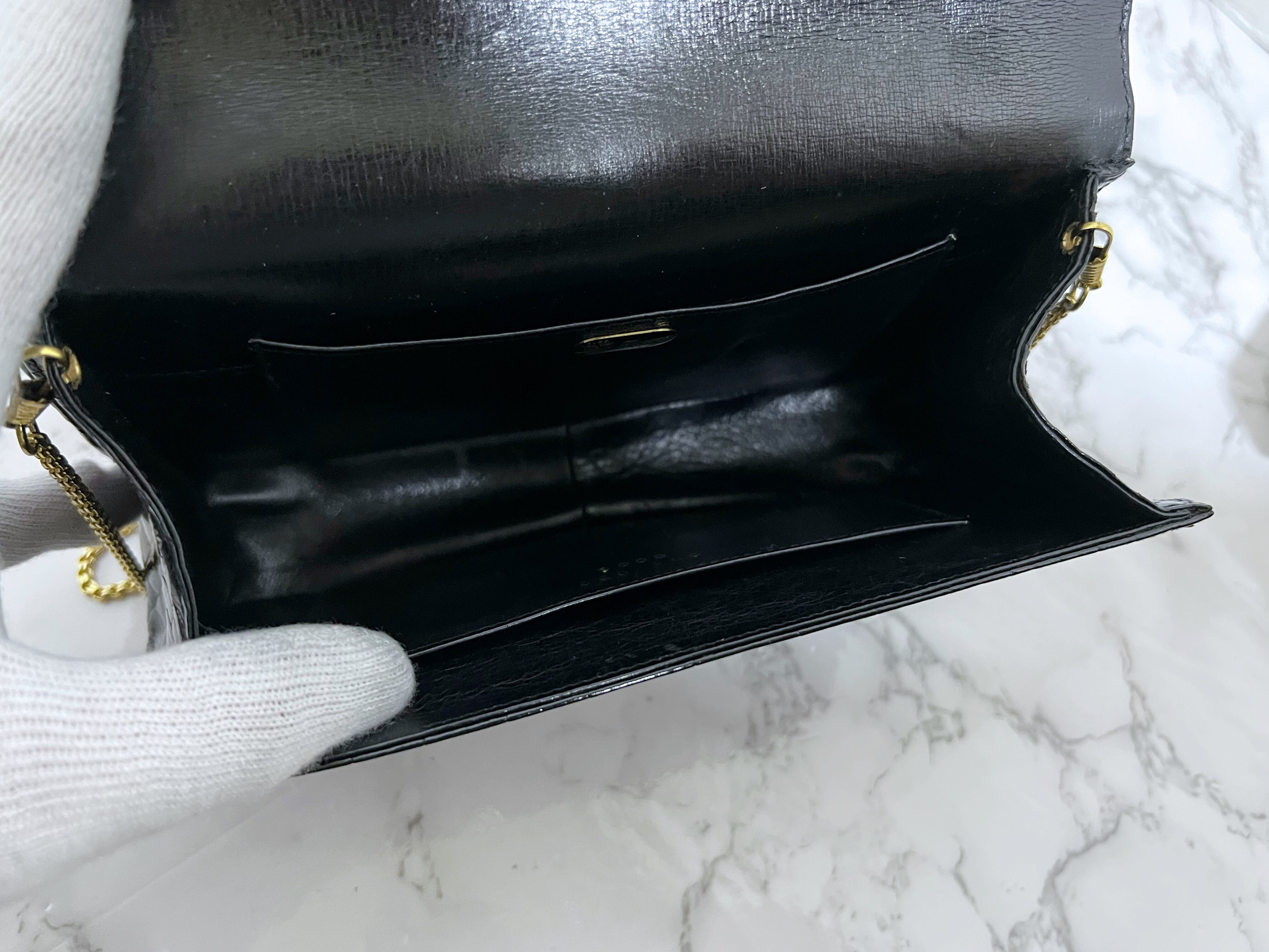 【状態】当時の価格からも非常に大切にされてきたことが分かる状態です。クロコ表面は艶感が当時購入時に近い状態で保たれており、目立つ傷も殆どございません。四隅の角擦れも皆無です。被せ蓋裏面に多少使用時につく爪傷などがございます。内部収納部分にベタツキや剥がれなどもなく気持ちよくご使用いただけます。80年代の物としてかなりのミントコンディションかと思います。※正面ゴールド金具に少々ゴールド金具のメッキ褪せあり