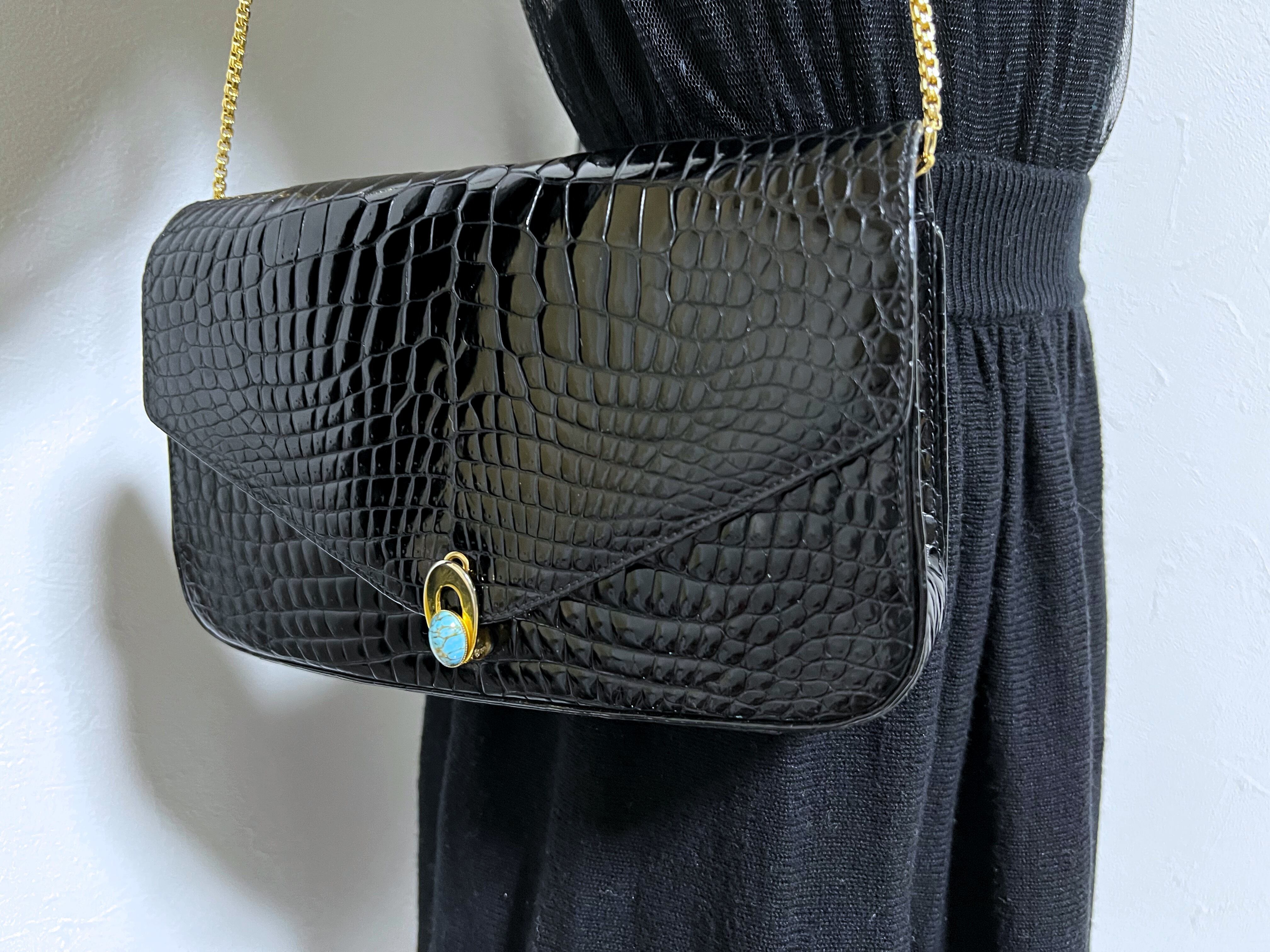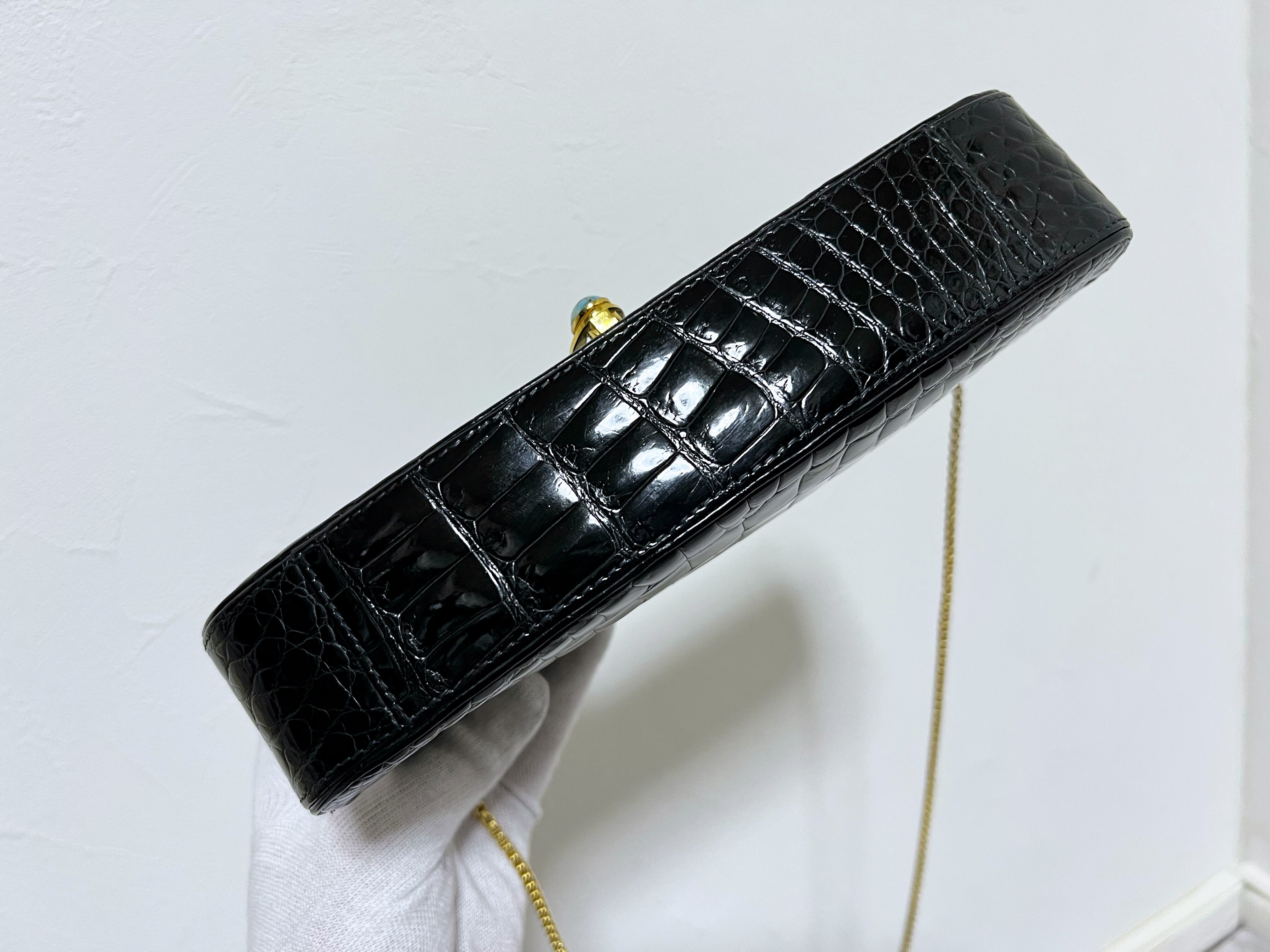 最高級クロコ&超希少型!オールドグッチ ターコイズ バックル チェーンショルダーバッグ