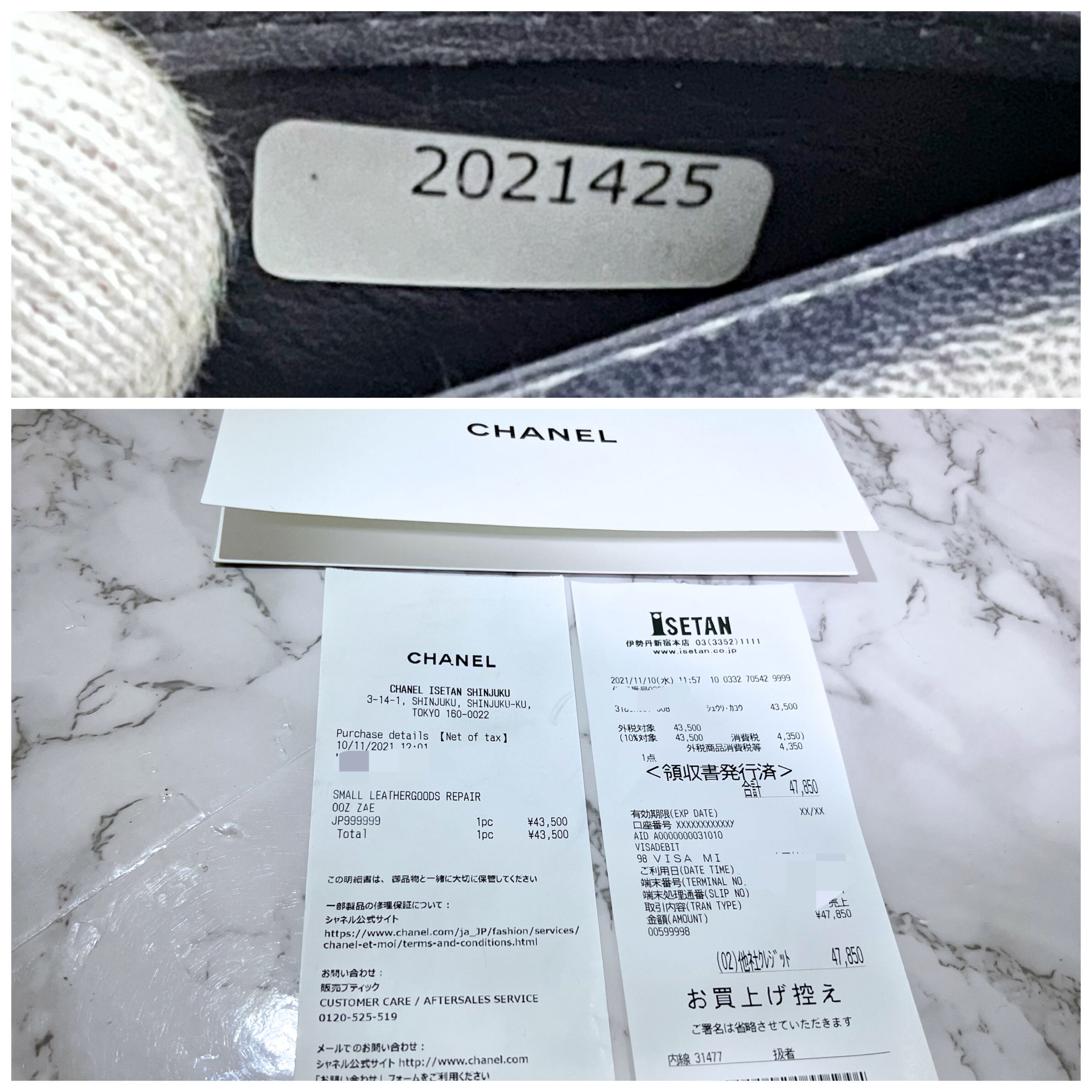 2021年11月10日に新宿伊勢丹のシャネルにて修理を完了したお品物です。(原本の修理明細レシート2枚そのままお付けします。修理自体私自体が持ち込んで清算したものです。)