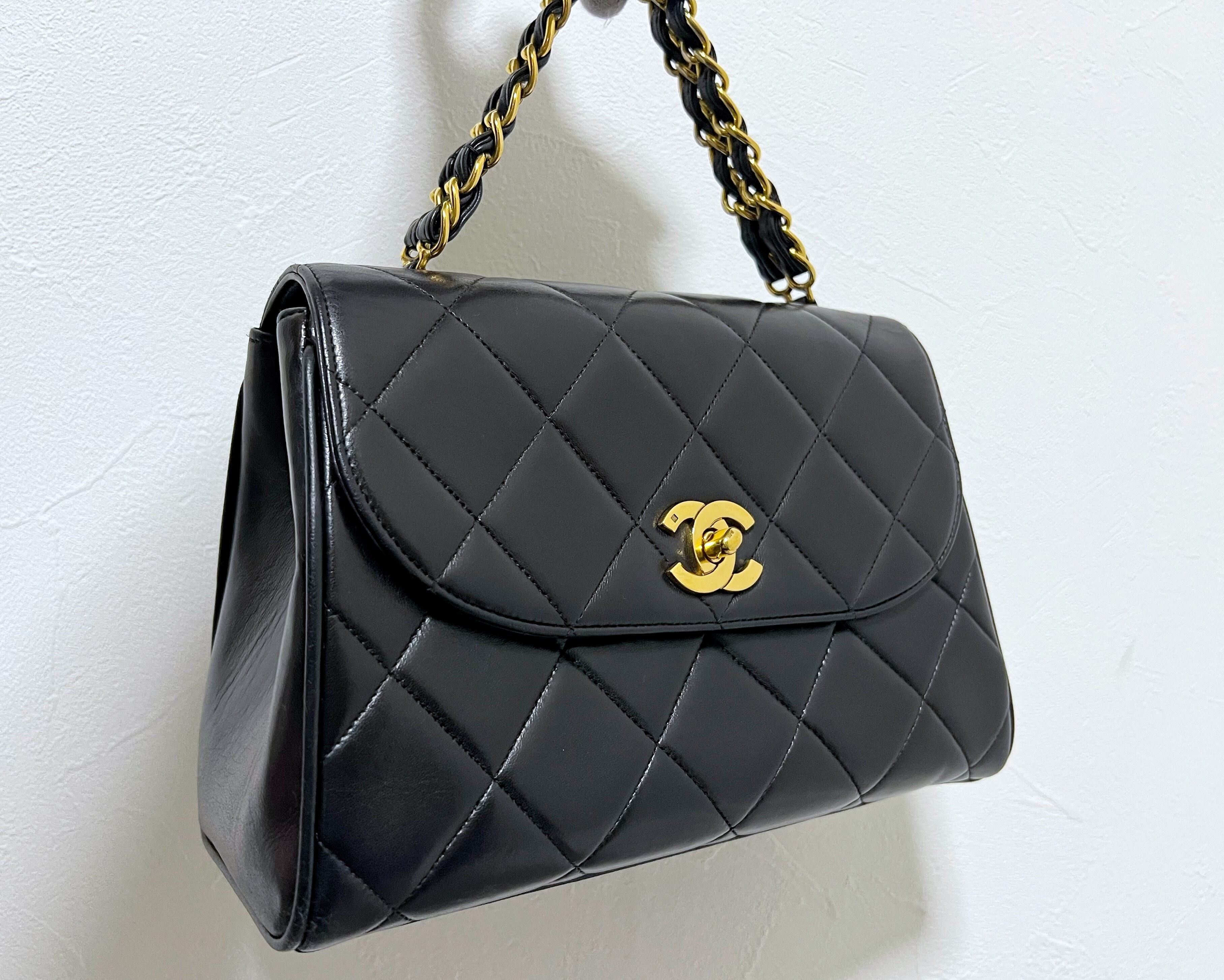 極美品!ヴィンテージ シャネル ターンロック マトラッセ 2連チェーン ハンドバッグ