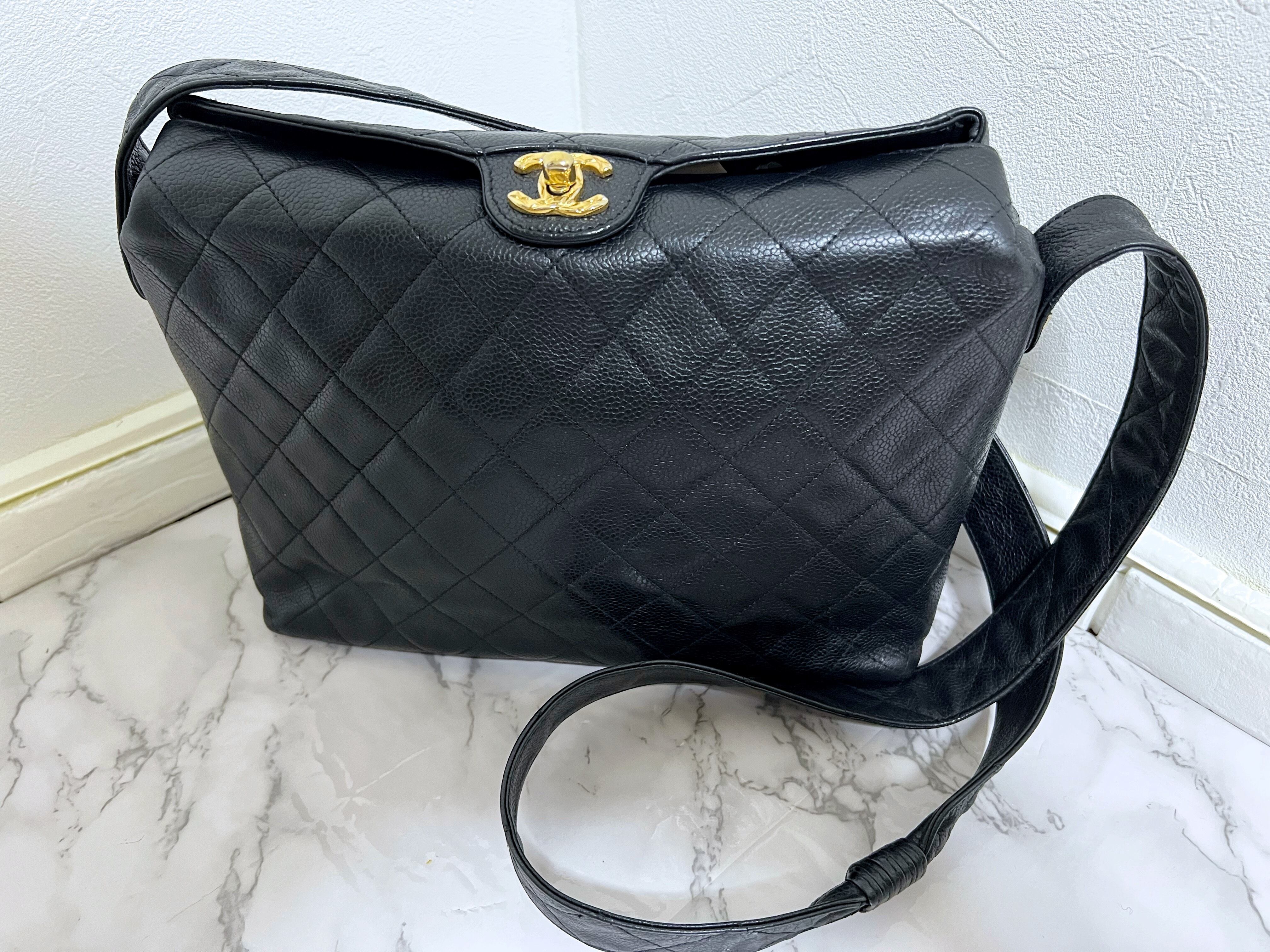 希少!国内正規物 ヴィンテージ シャネル キャビアスキン ターンロック ショルダーバッグ