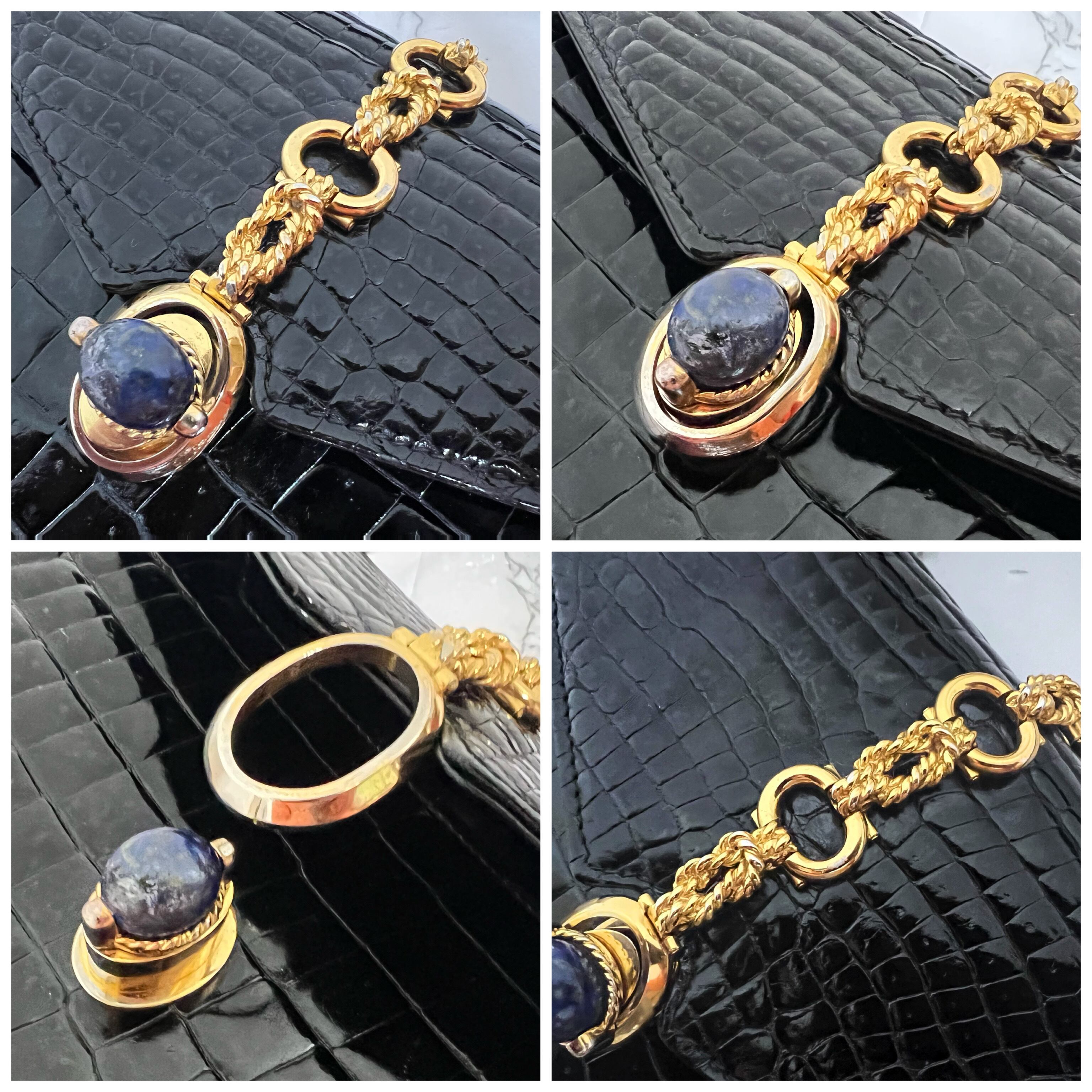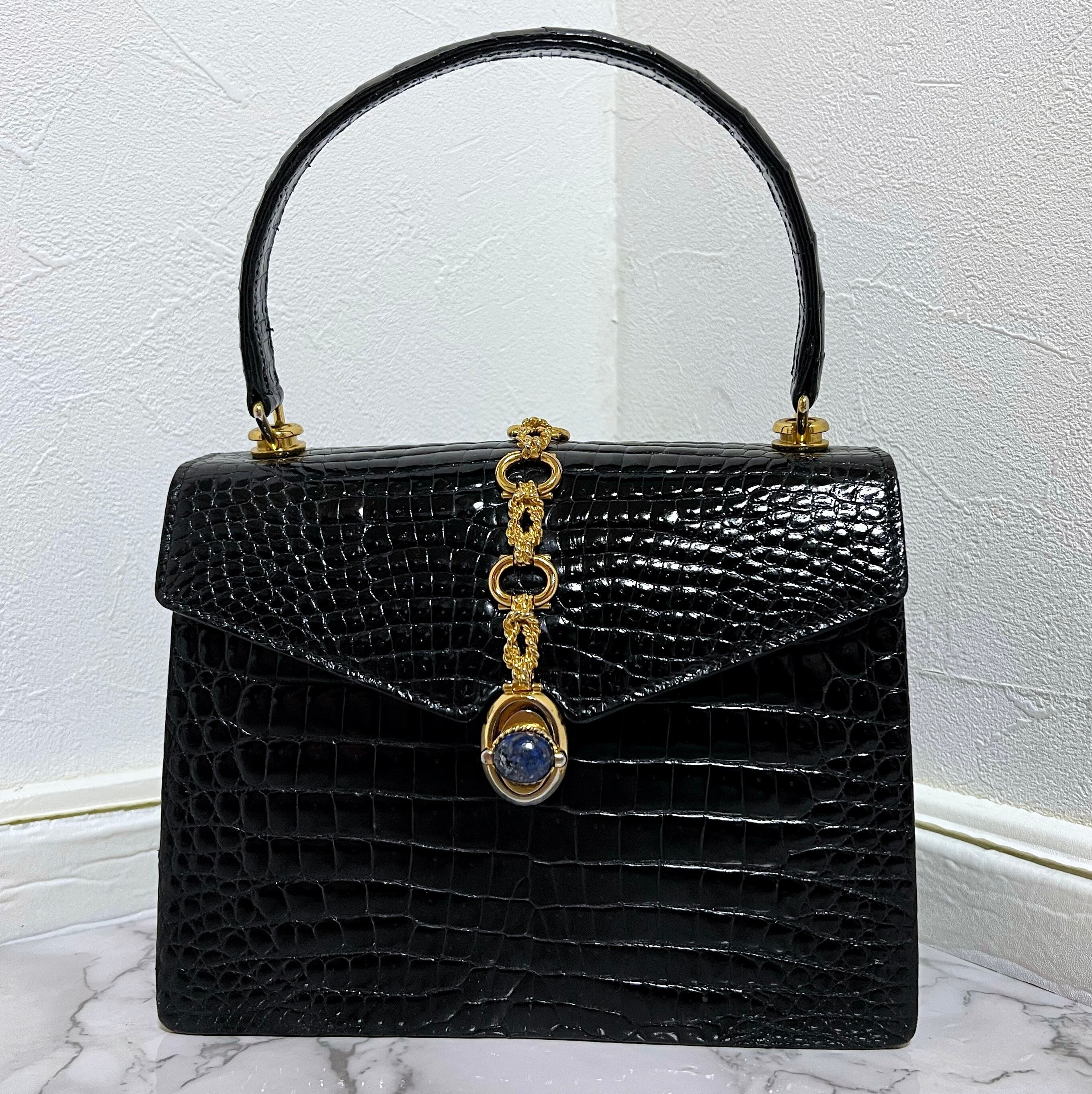 古き良き時代の名品!80S オールドグッチ ラピスラズリ シャイニー クロコ ハンドバッグ クロコダイル
