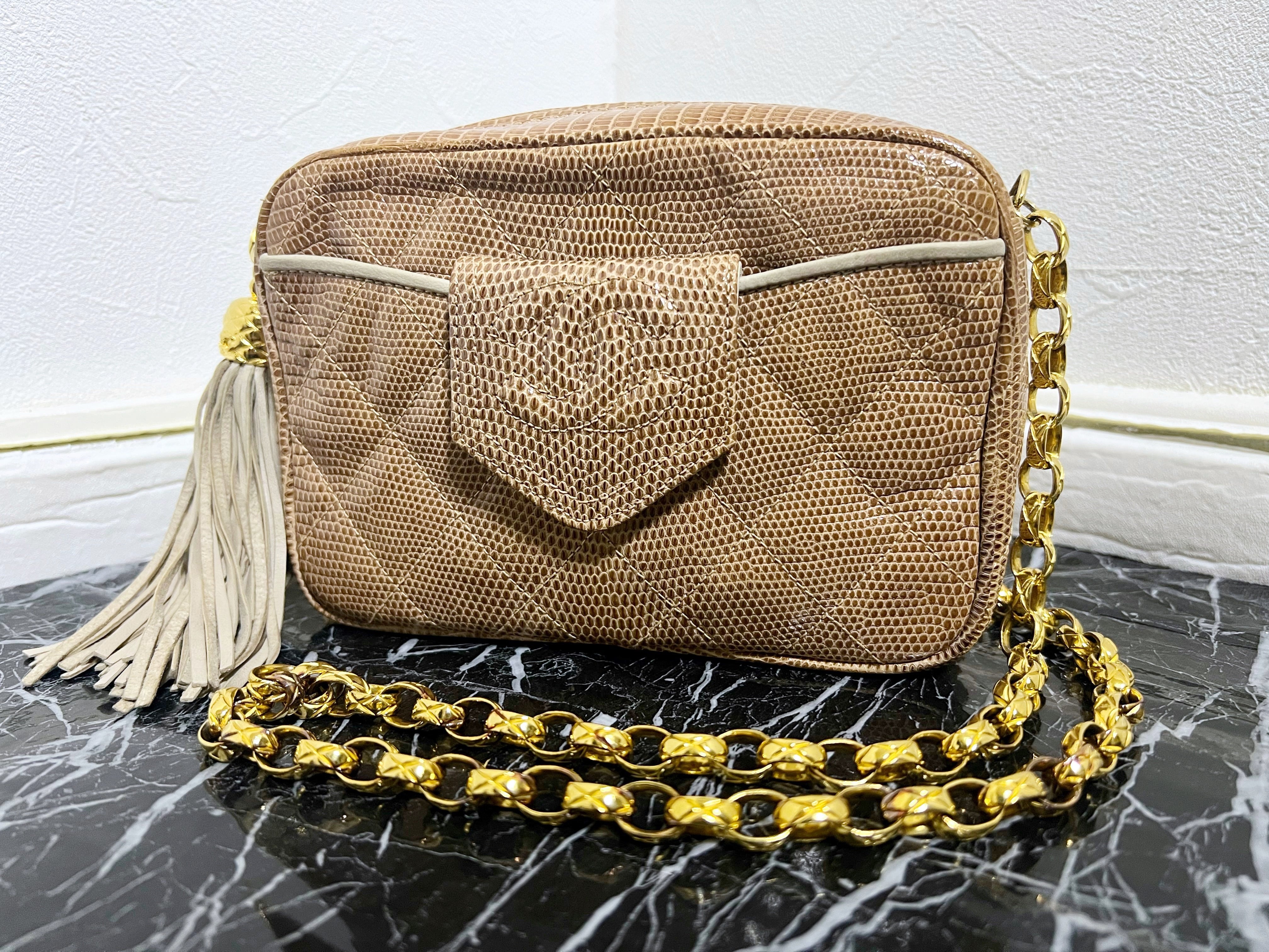 極美品&激レア!ヴィンテージ シャネル リザード マトラッセ フリンジ付 ビジューチェーンバッグ