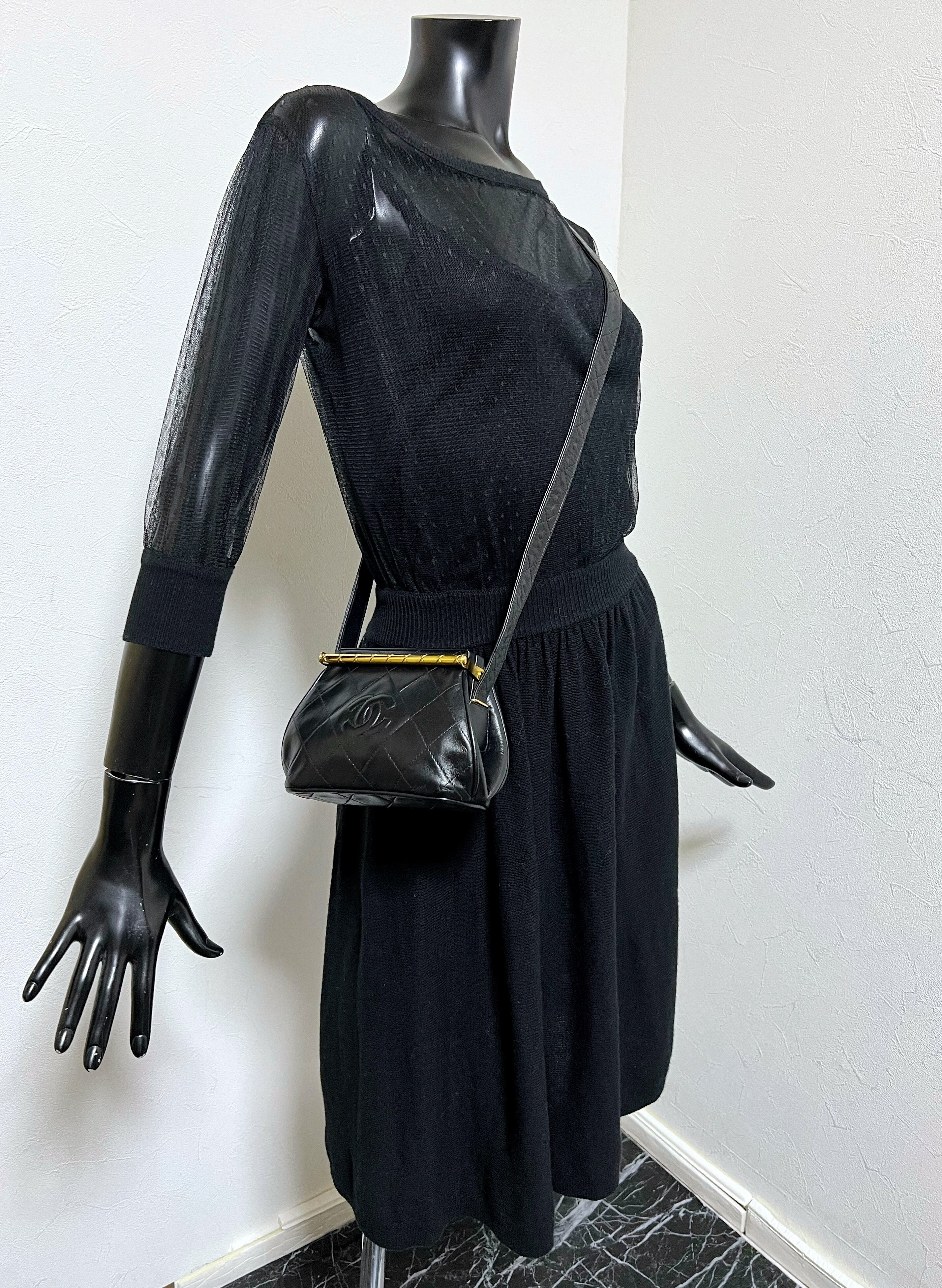 極美品!ヴィンテージ シャネル マトラッセ がま口トランク レザーショルダーバッグ