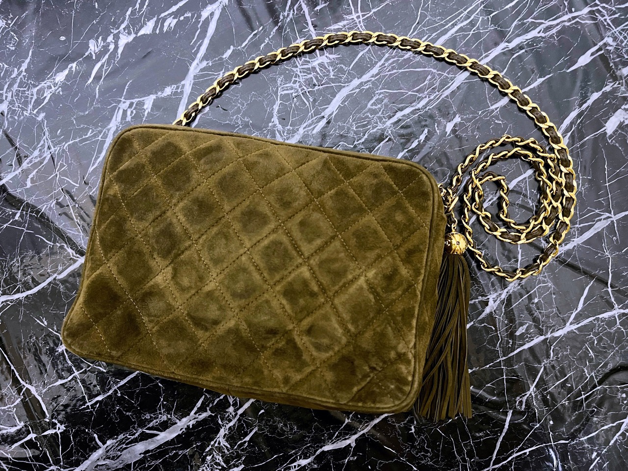 美品!ヴィンテージ シャネル フリンジ マトラッセ ヌバック チェーンショルダーバッグ