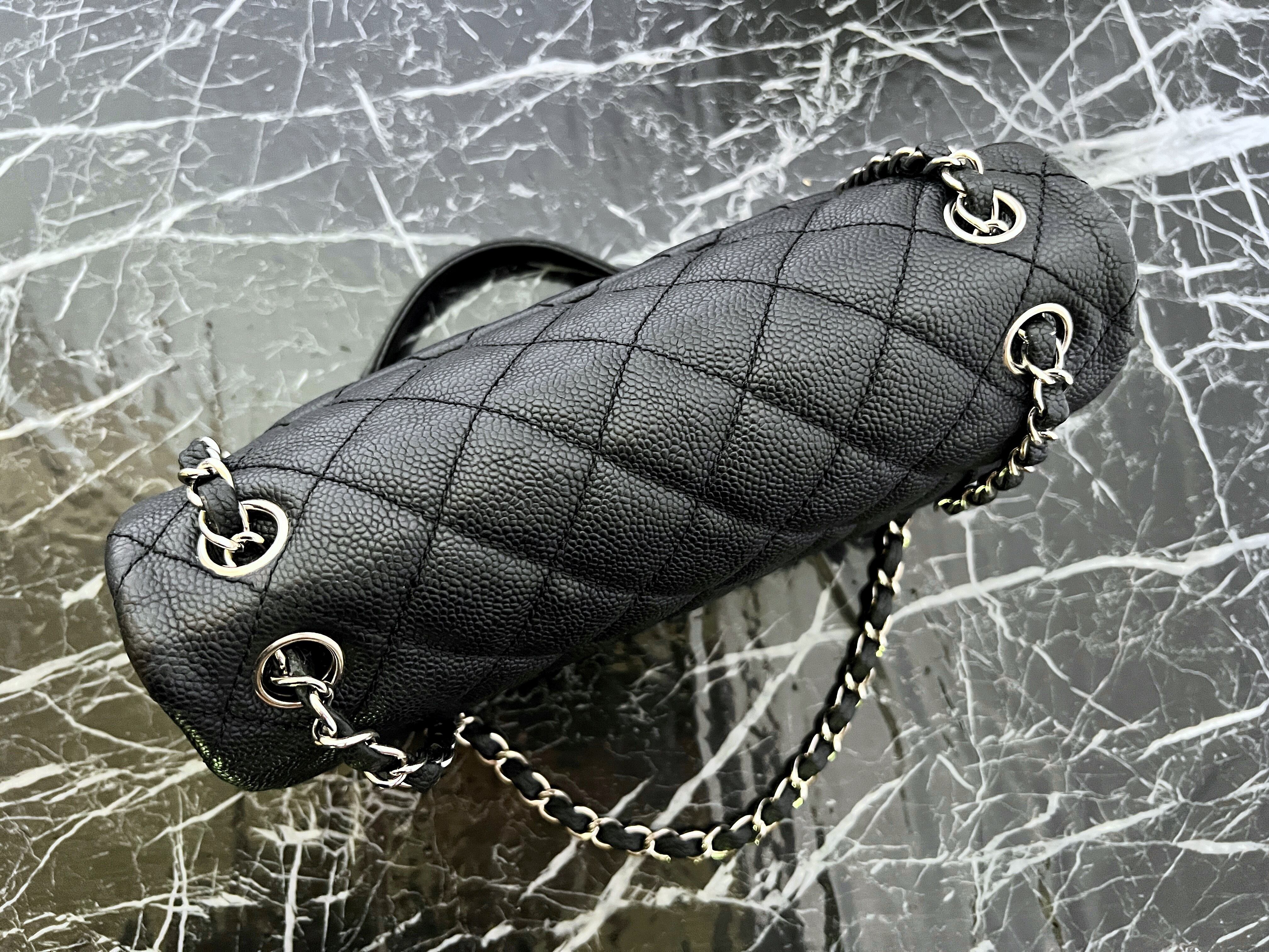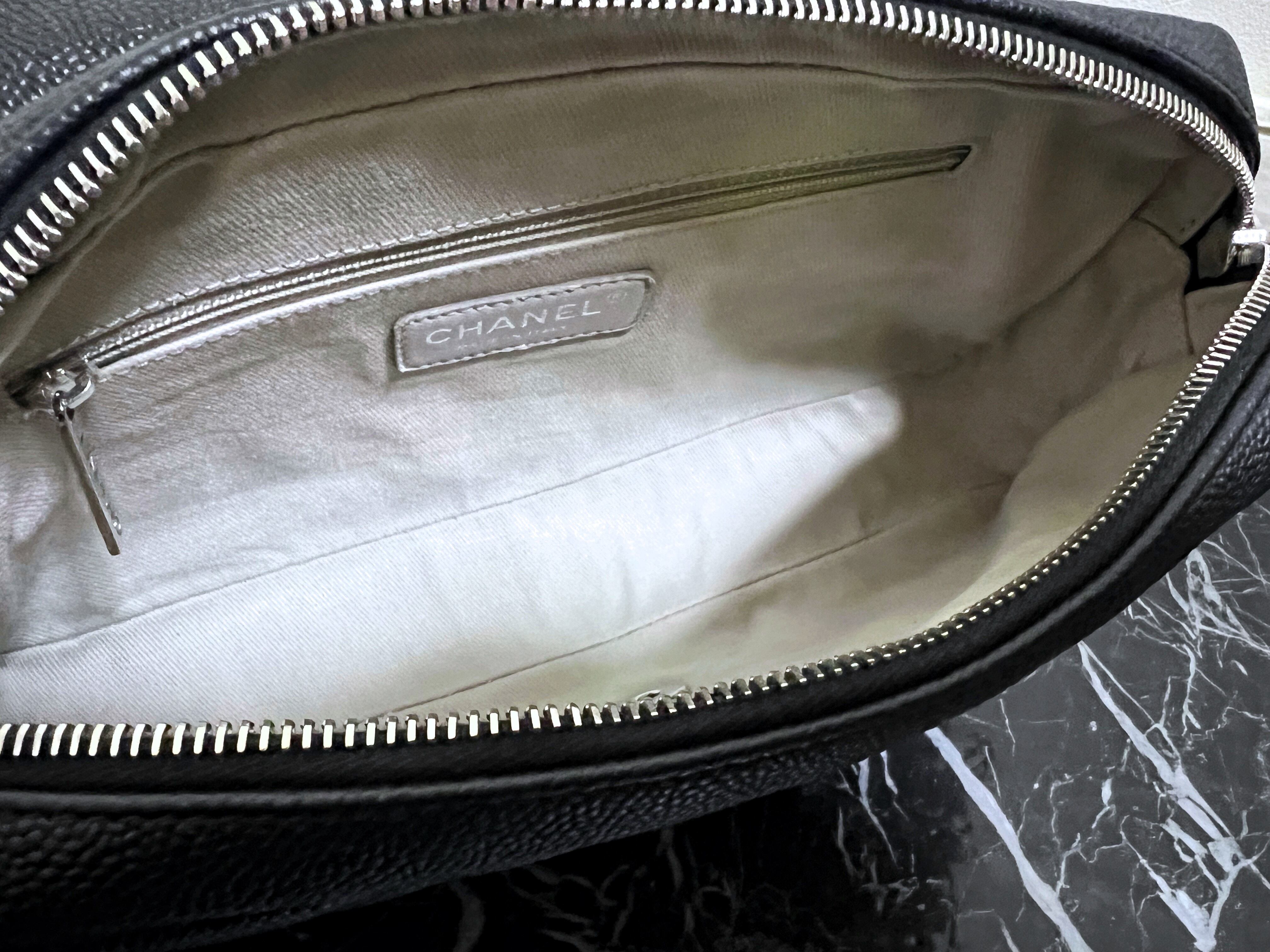 価格が非常に高騰している人気のキャビアスキンのチェーンショルダーです。Wフラップ式のマトラッセは実用面では以外に使いにくい造りですが、こちらはファスナータイプで収納もし易く長く重宝いただけること間違いなしです。レザーの張り感もしっかりあり、非常に良好なコンディション。ユーズドを初めて買う方にも安心してお勧めできます。