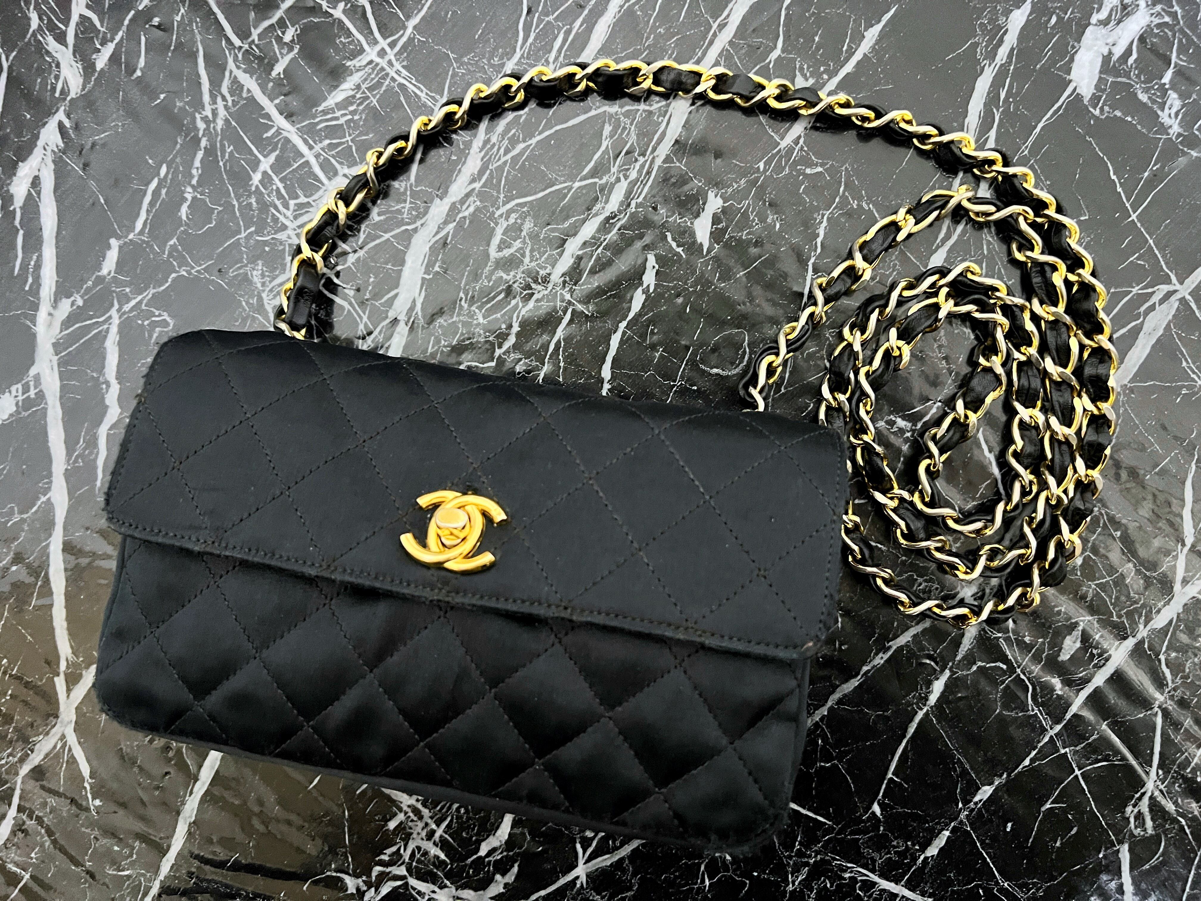 ヴィンテージ シャネル ミニマトラッセ シルクサテン チェーンショルダーバッグ