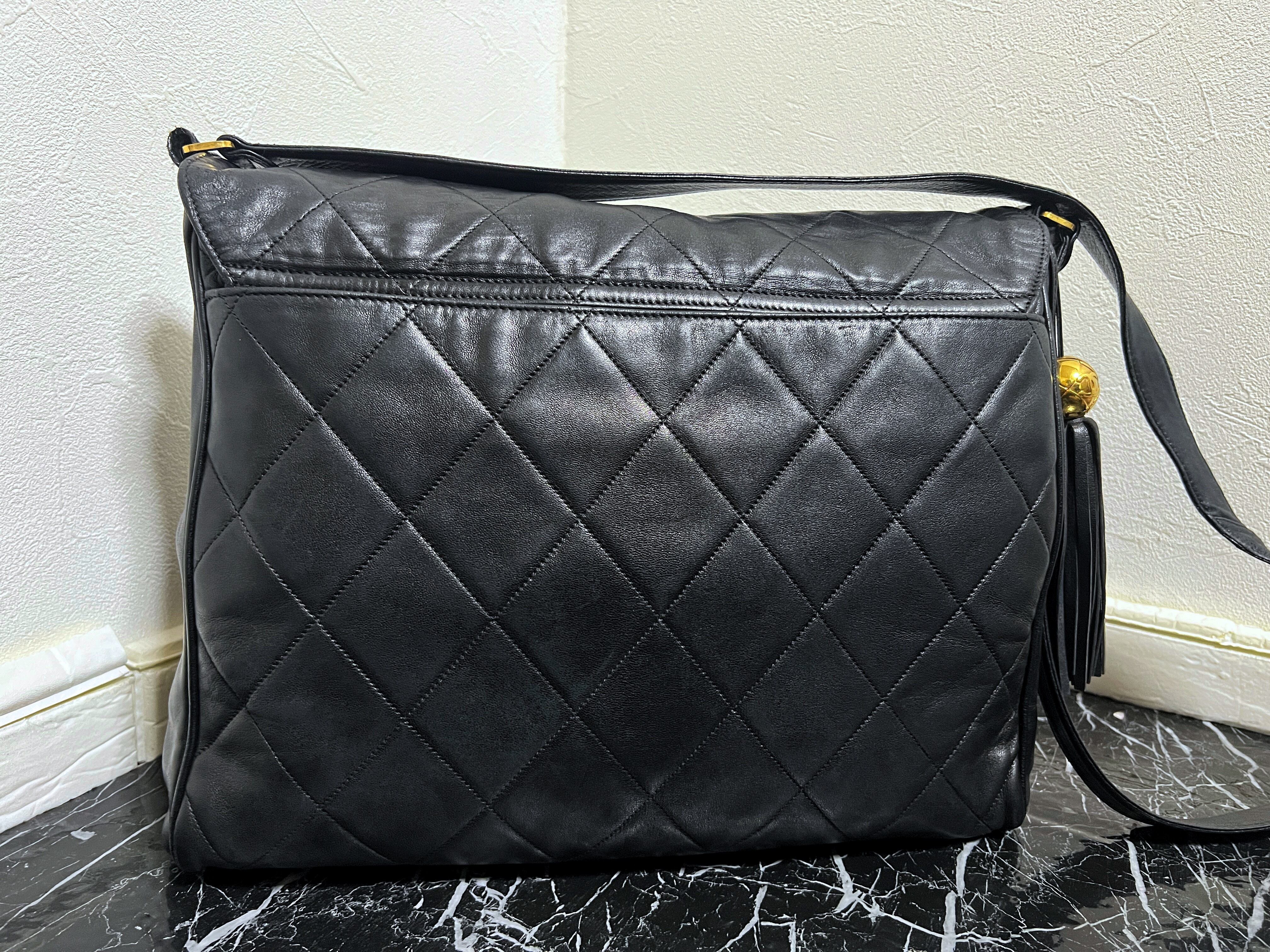 ヴィンテージ シャネル フリンジ付 デカココ ターンロック レザーショルダーバッグ ラムスキン