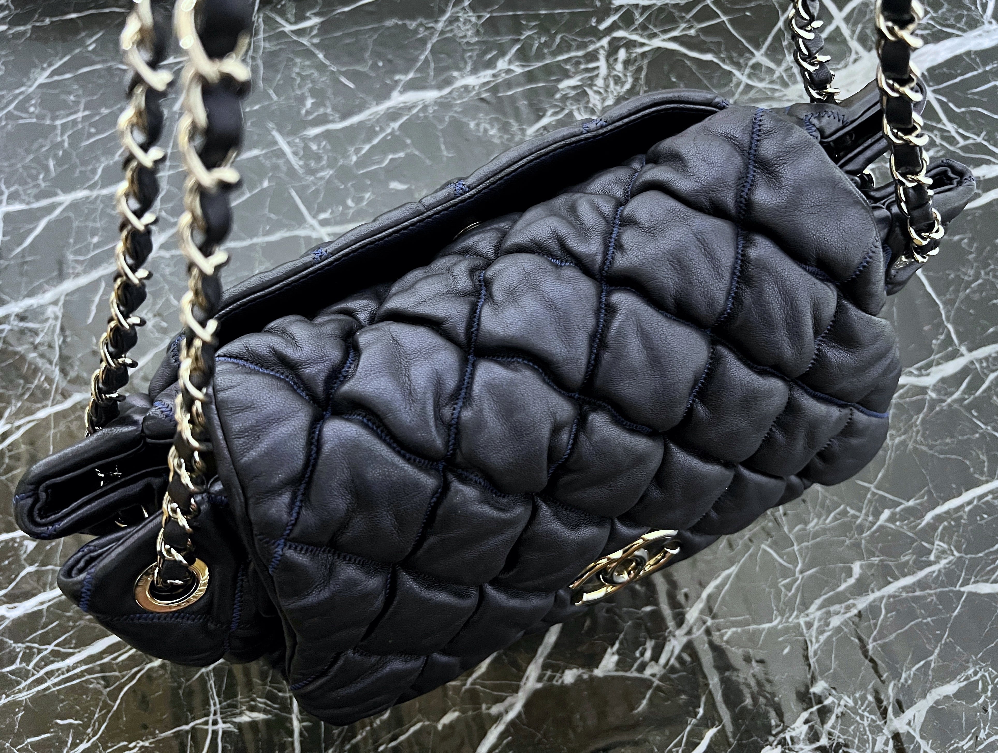 美品 シャネル バブルキルト ラムスキン フラップ チェーンショルダーバッグ