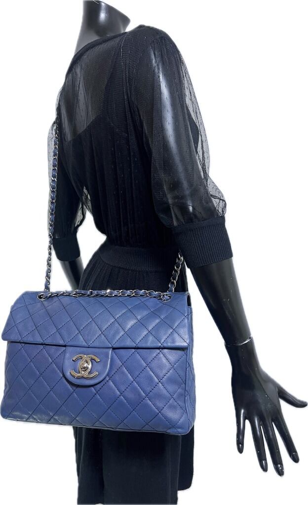 美品 シャネル ソフトキャビアスキン デカマトラッセ 34 マキシ ダブルチェーンショルダーバッグ