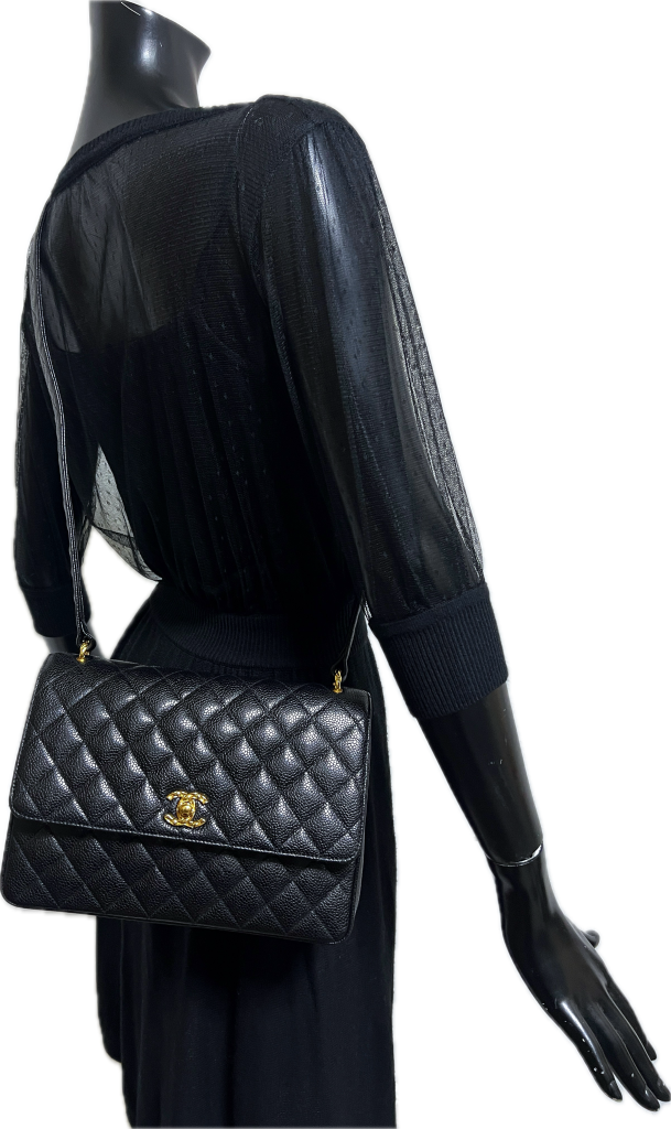 極美品 希少モデル ヴィンテージ シャネル キャビアスキン マトラッセ レザーショルダーバッグ