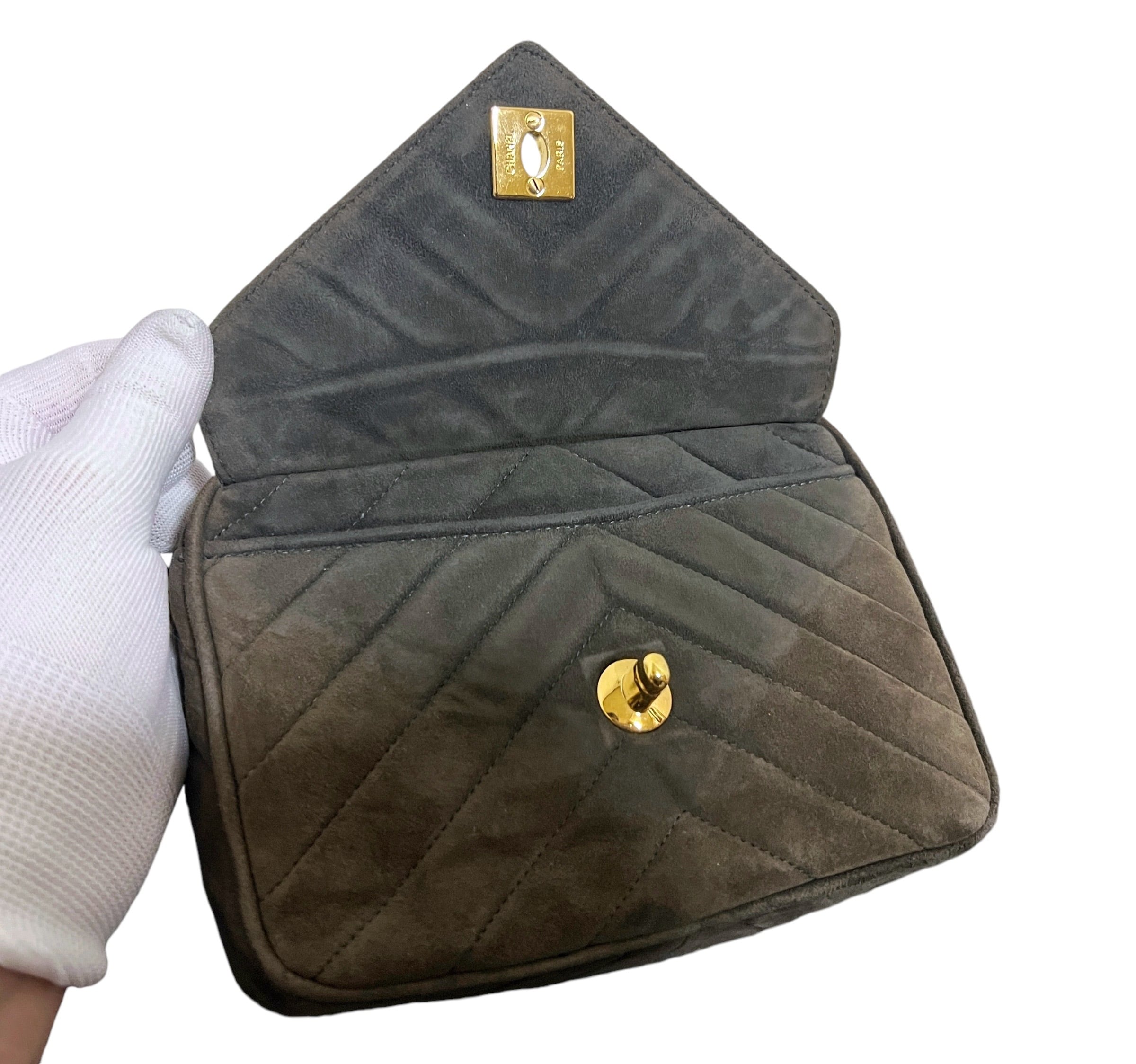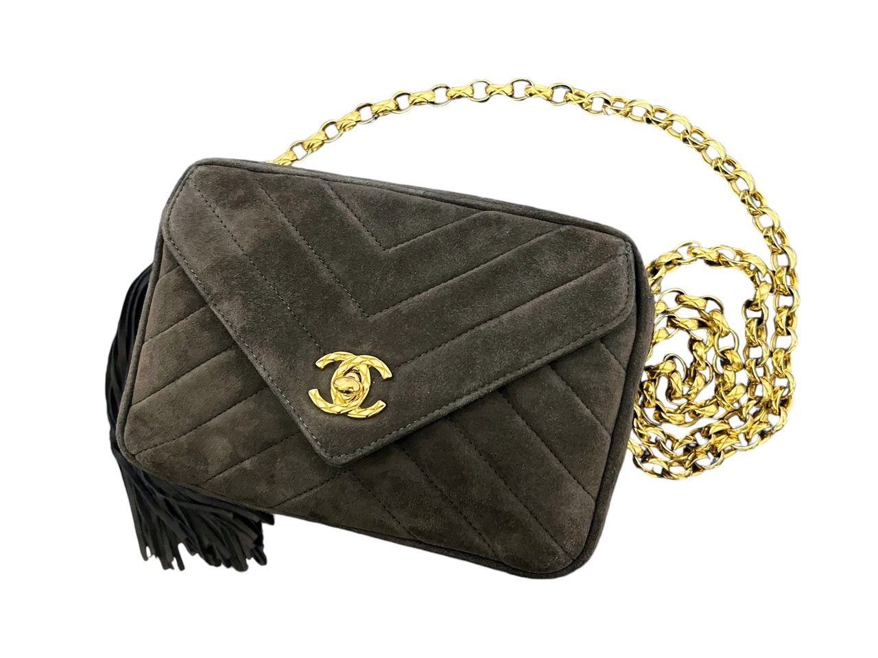 美品 ヴィンテージ シャネル シェブロン Vライン フリンジ ビジュー チェーンショルダーバッグ
