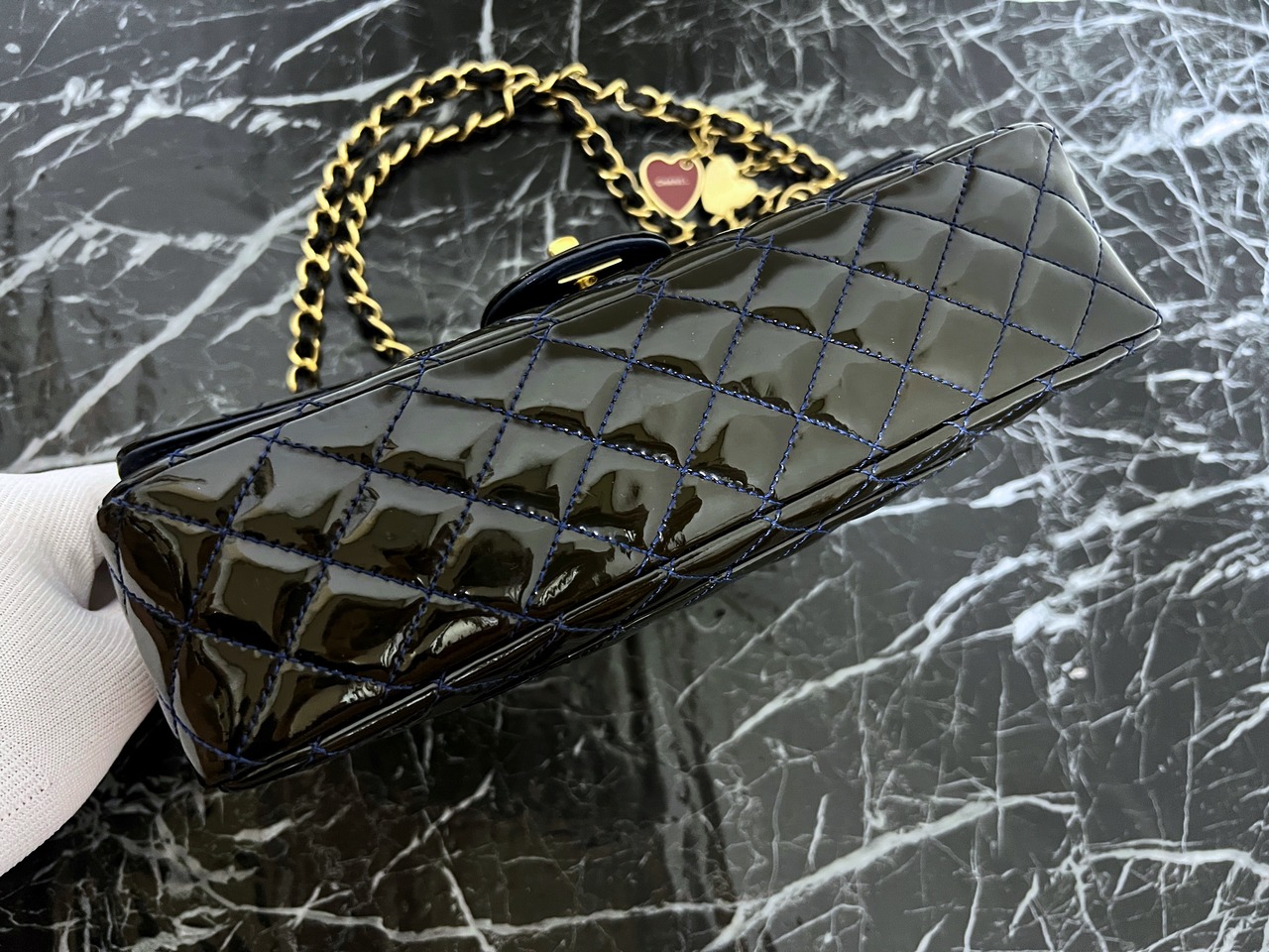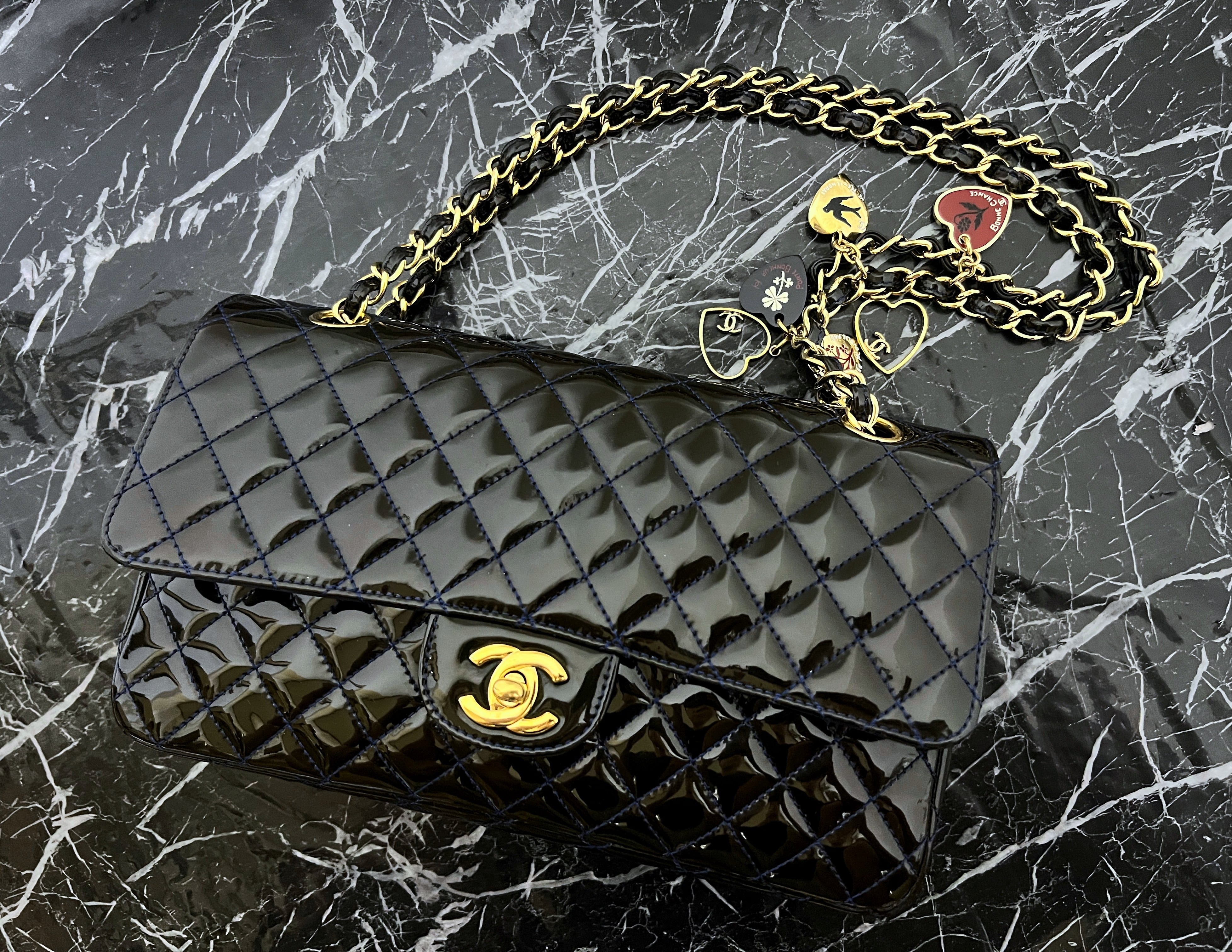 極美品 シャネル バレンタイン限定 ハートチャーム付 マトラッセ チェーンショルダーバッグ