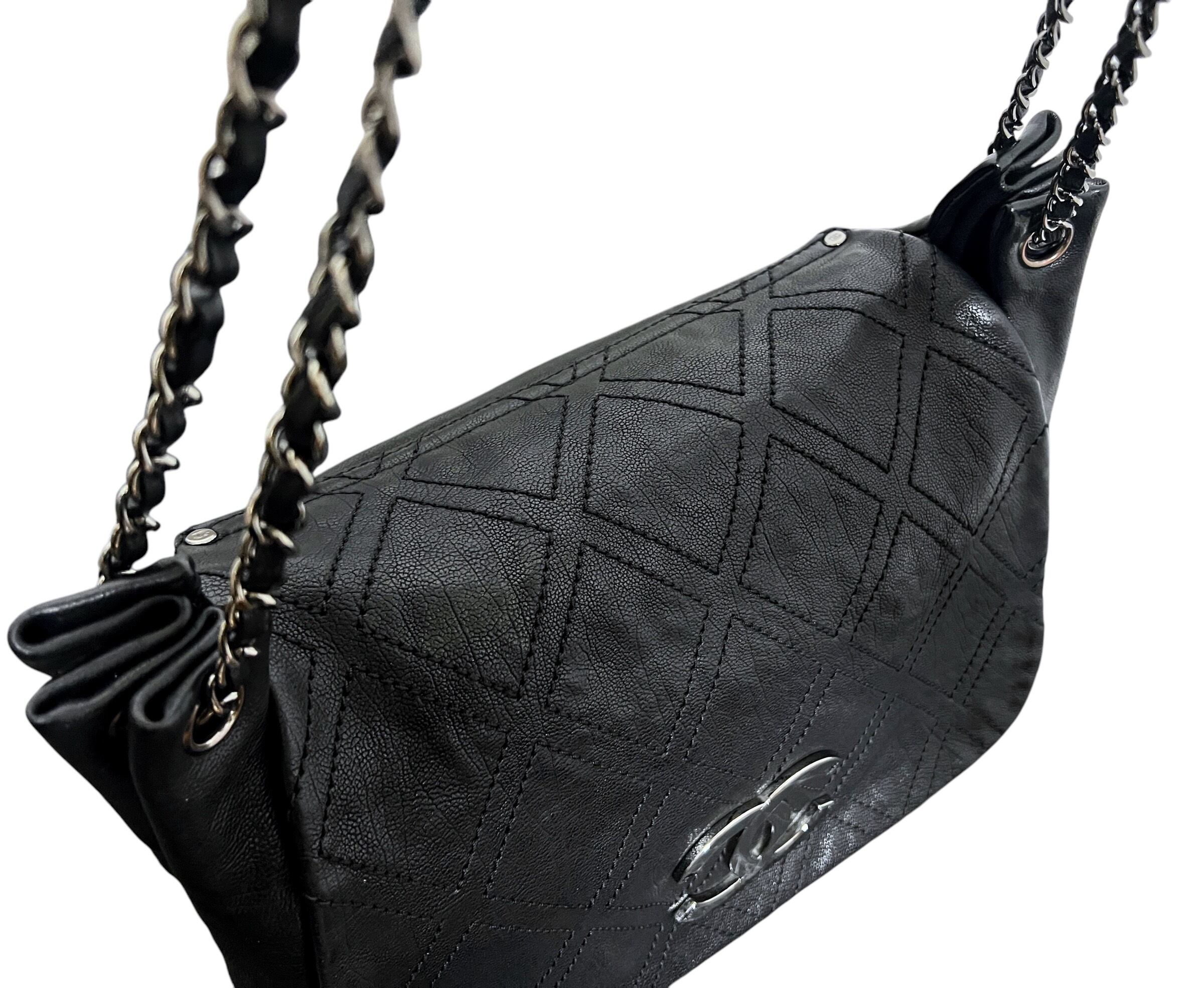 極美品 シャネル デカココ フルフラップ ライダースレザー チェーンショルダーバッグ