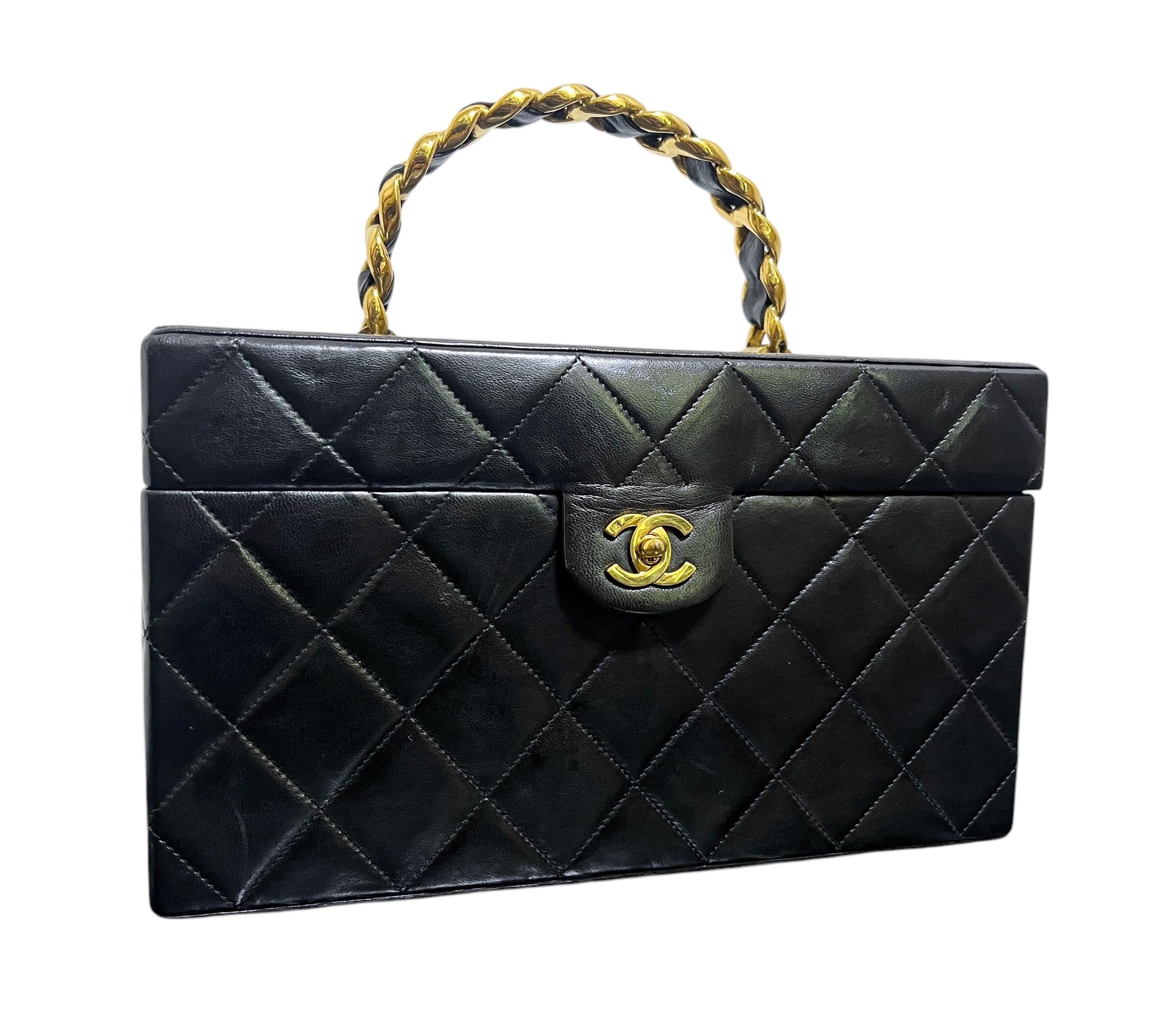 希少 ヴィンテージ シャネル ラムスキン ターンロック マトラッセ 化粧ケース/バニティバッグ